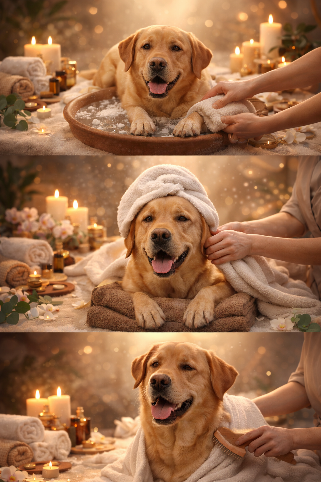 Alla spa-paket inkluderar avslappnade massage och sound bath ( om hunden tillåter )